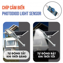 - Đèn được thiết kế với tính năng thông minh cảm biến ánh sáng đèn tự động sáng và tắt mỗi khi trời tối sáng, ngoài ra đèn còn có thêm bộ điều khiển từ xa với nhiều phím chức năng như hẹn giờ sáng 3 tiếng, 5 tiếng, 8 tiếng, tăng giảm độ sáng tiện lợi magn lại sự thoải mái cho người dùng